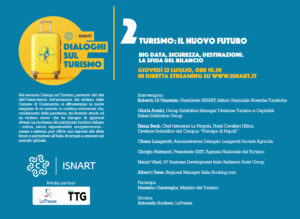 ISNART Istituto Nazionale Ricerche Turistiche organizza per il prossimo giovedì 22 luglio 2021 ore 10.30 l’incontro streaming “Dialoghi sul turismo”.
