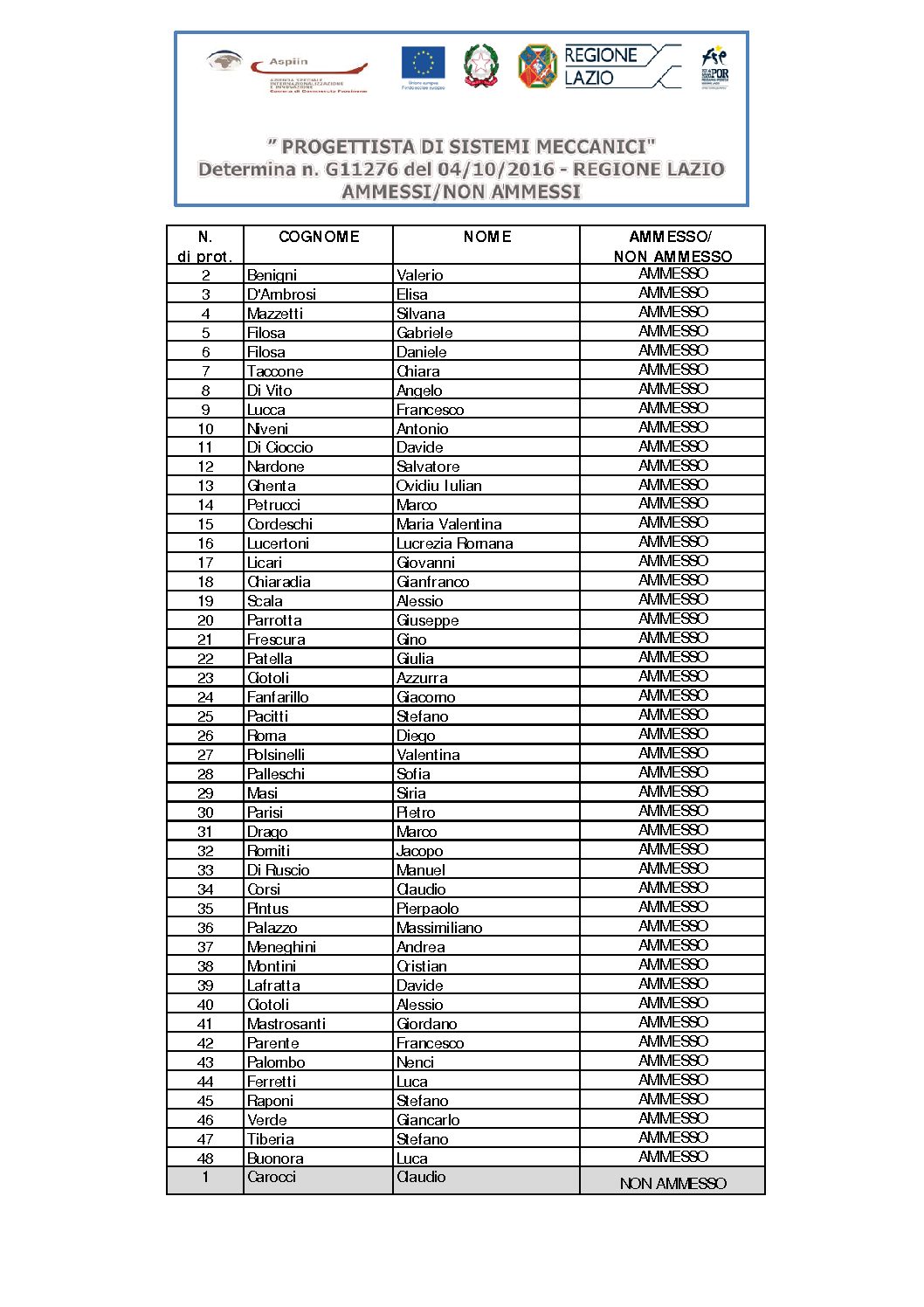 ammessi_non ammessi alla selezione